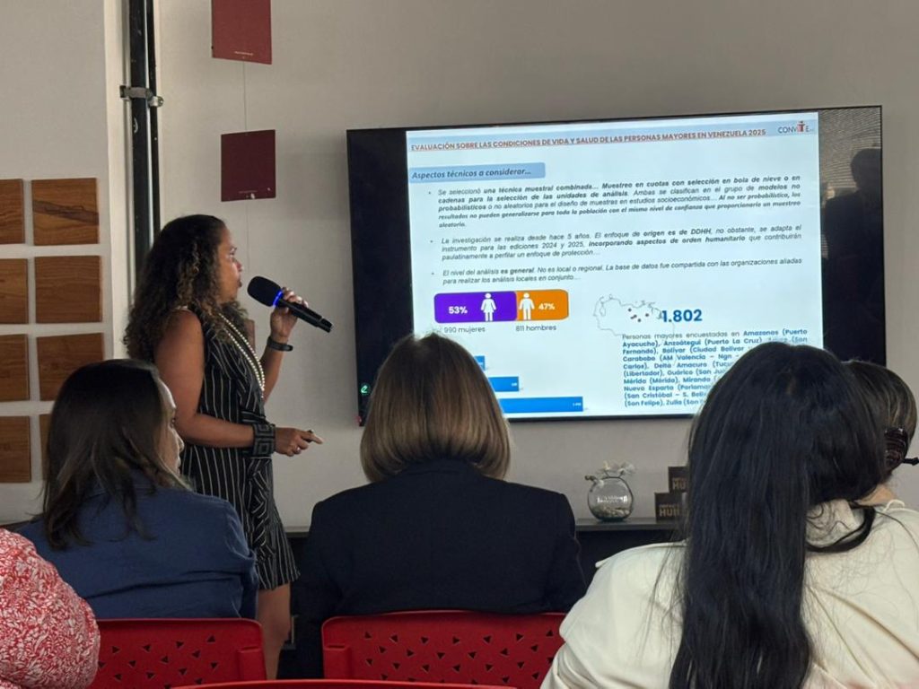 La Asociación Civil Convite , en el marco de su 20 aniversario, presentó los resultados de la «Evaluación sobre las Condiciones de Vida y Salud de las Personas Mayores en Venezuela 2025″. El informe, presentado por la Coordinadora de Investigación, Yaniret Fernández, revela una realidad alarmante: mientras una persona mayor requiere entre $450 y $500 mensuales solo para alimentación, el ingreso promedio por pensiones y bonos promedia los $51.